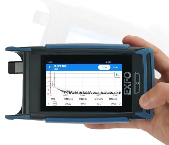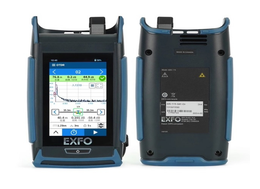 EXFO AXS-115光時域反射儀采用4英寸高清戶外觸摸屏,圖像清晰,反應(yīng)靈敏,整體外觀小巧便攜,整體外觀緊湊且只有兩個端口,分別為OTDR測試端口和type-c充電端口,OTDR測試端口大家可以根據(jù)自己的測試需求選擇不同的端口類型,底部為type-c端口,用于充電和數(shù)據(jù)傳輸。