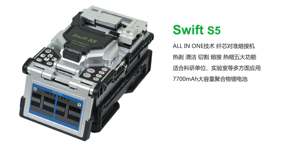 Swift S5 一臺(tái)采用IPAS(圖象分析對(duì)準(zhǔn)系統(tǒng))技術(shù)為基礎(chǔ)的纖芯對(duì)準(zhǔn)熔接機(jī)。