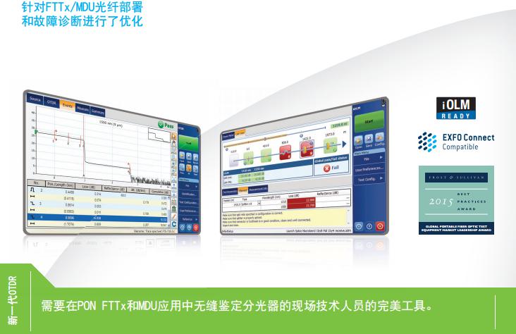 這一款OTDR進行了優(yōu)化,可通過分光器進行測試FTTH鏈路。由于其動態(tài)范圍可高達39 dB,因此現(xiàn)場技術(shù)人員可以鑒定約100 km的鏈路并進行故障診斷。