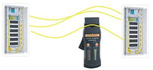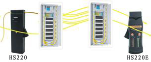在光纖的一端讓HS220夾好光纖,發(fā)生有規(guī)律的強、弱調(diào)制信號,在光纖的另外一端夾上HS220E,通過接收HS220發(fā)出的調(diào)制信號識別是不是同一條光纖,逐條檢測找出對應關(guān)系。