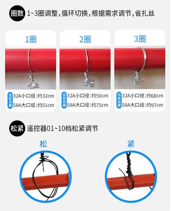 一盤110米,一次出絲600~700mm,可捆扎150~180次